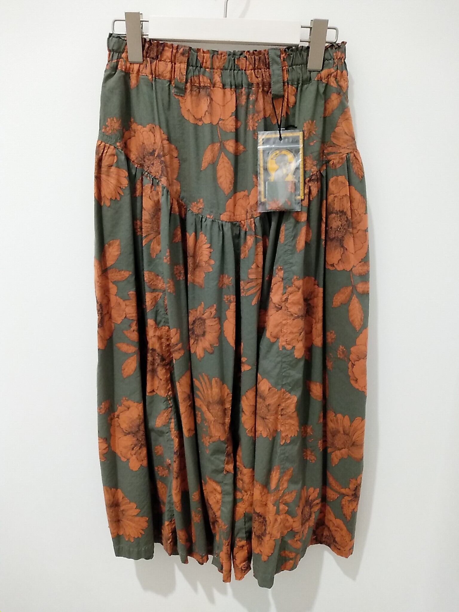 大きな花柄が印象的なパンツです。片側が116㎝とかなり幅広いワイドパンツですが、素材は綿とレーヨンの柔らかい素材のため広がりにくいです。