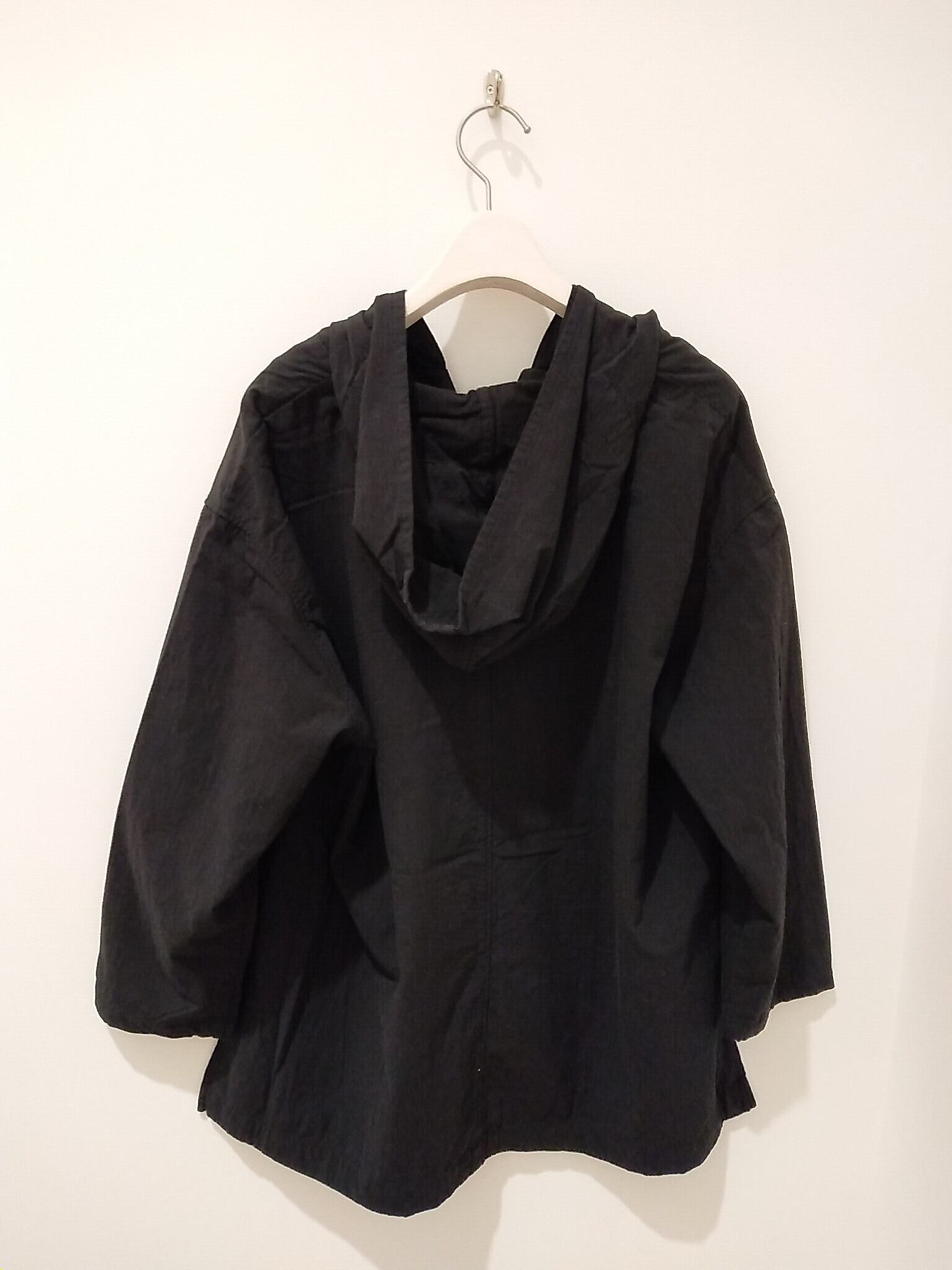 フード付き袖丈短めのオーバーサイズで可愛く着れる綿素材のプルオーバー。