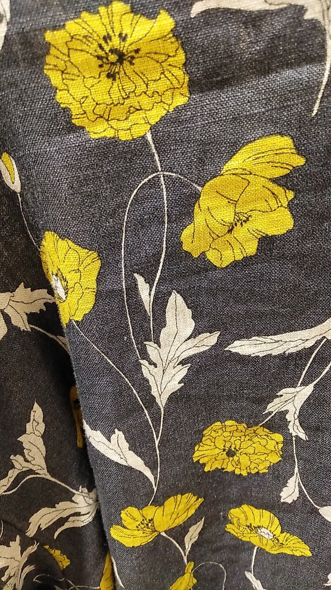 風通しの良い麻100%素材で、涼しさと快適さを両立したパルティクラール【KPB-3368】プルオーバー。ゆったりとした七分袖とすっきりとしたラウンドネックが、爽やかな印象を与えます。山吹色とグレーの配色であしらわれた芥子の花のプリントが、個性的なアクセントを添えます。